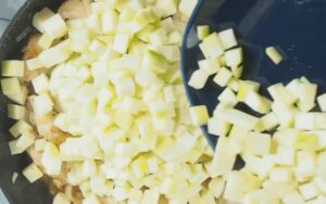 - Ubacite tikvice i beli luk, ako ga koristite. Promešajte i dinstajte još 3–4 minuta, da tikvice omekšaju, ali da ipak ostanu čvrste.