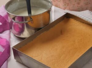 - - Pecite oko 25 minuta, dok površina ne dobije blagu zlatnu boju, a čačkalica izađe skoro čista.- U međuvremenu, zagrejte 300 ml mleka sa 2 kašike šećera dok se šećer ne otopi (ne dozvolite da proključa).